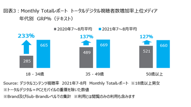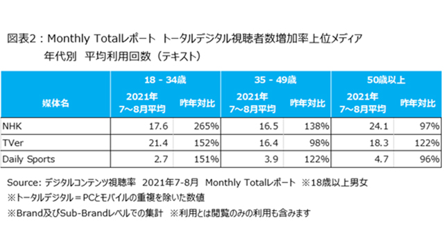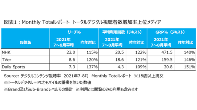 ニールセン、トータルデジタル視聴者数の増加率上位メディアの視聴状況を発表