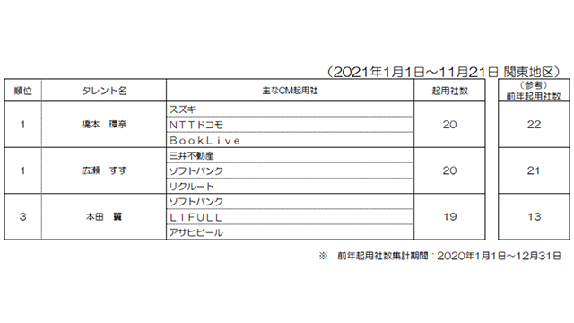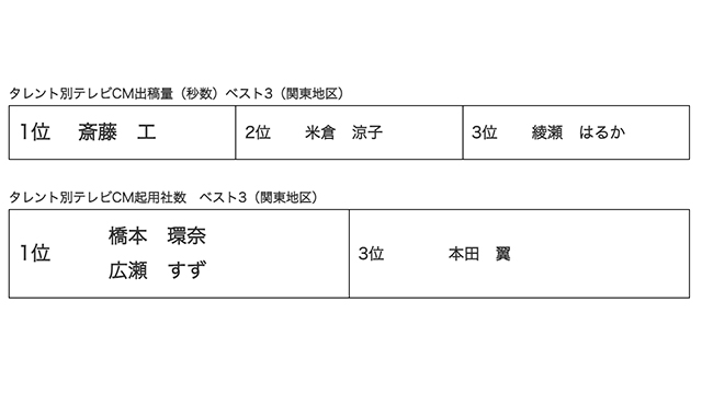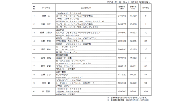 斎藤工が初のトップ!ビデオリサーチ、2021年「年間テレビCM出稿量」「テレビCM起用社数」の集計結果発表