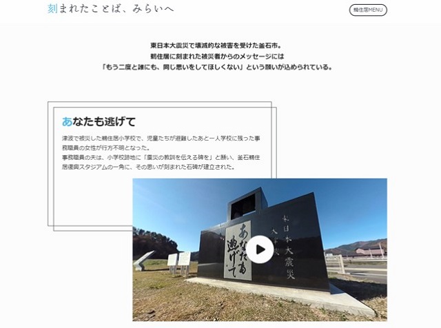 両社は去年4月から、岩手日報記者が出演するIBCラジオ番組『デジタルニュース・ラボ』を共同展開。番組内で鵜住居出身の若手記者が自らのふるさとを見つめる新聞特集記事を定期的に取り上げ、震災後のまちと人の姿を、新聞・放送だけでなく、多様なデジタルコンテンツとして発信してきた。その集大成として今回、「鵜住居」というひとつのまちに焦点をあてた特設サイトを制作し公開。震災以前の住民の営みや、まちに残る震災の教訓を風化させずにデジタルデータとして残していく狙いがある。