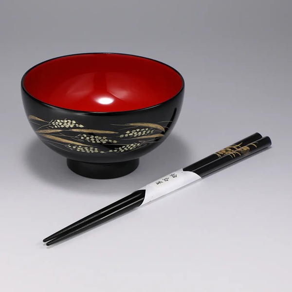 ・輪島塗「稲穂沈金」汁椀とお箸セット