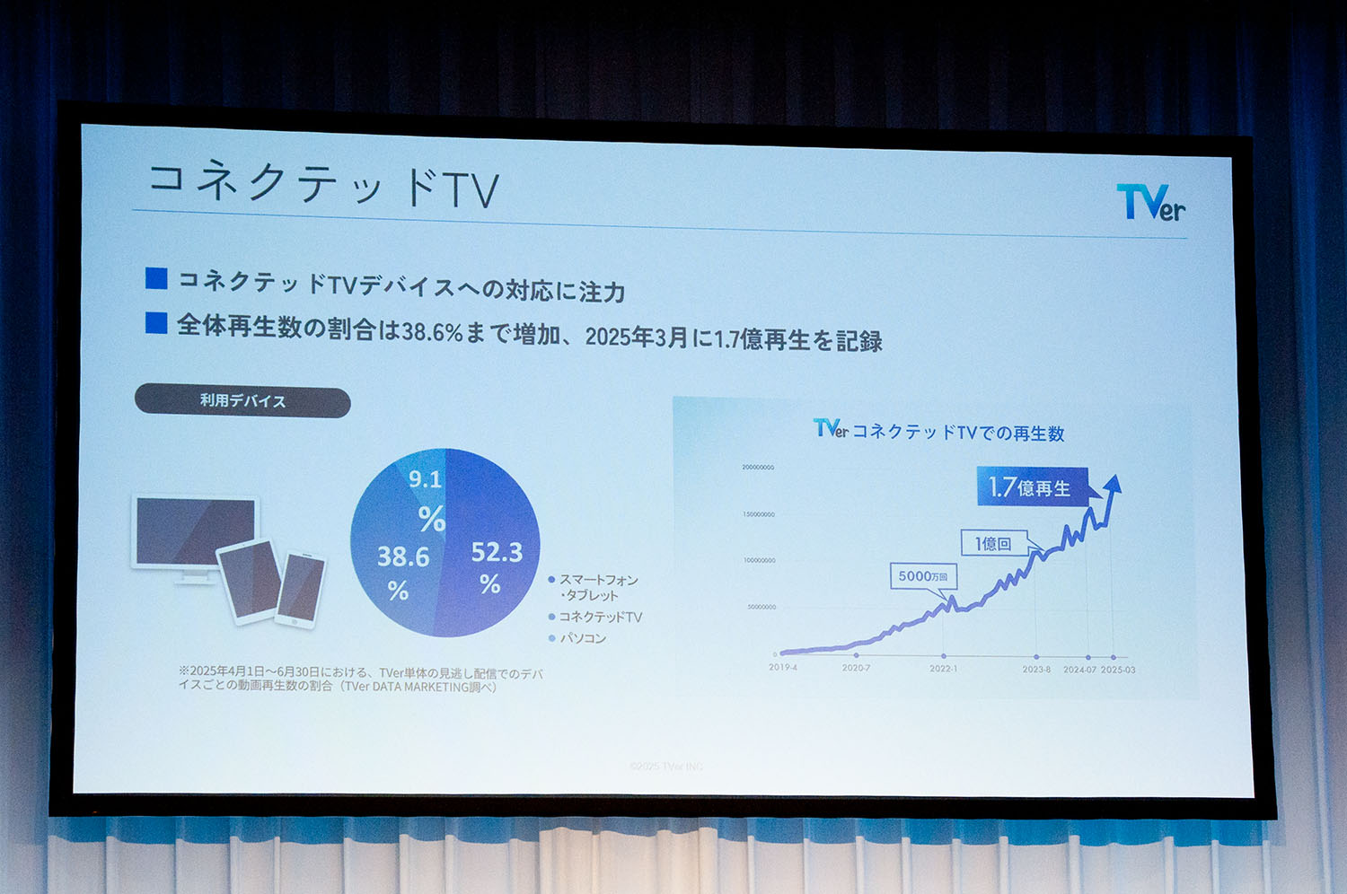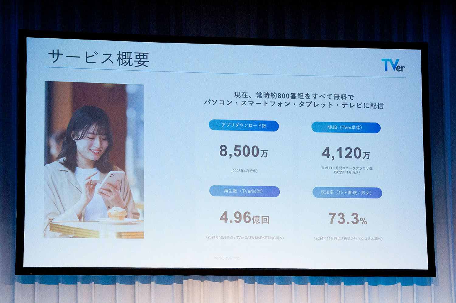 「調査によると、TVerのサービス認知度は75%弱ある一方、『TVerは無料である』と知っている人は51%しかいない。私の妻も『アプリをダウンロードしたから課金されたんじゃないの』と言っていたほど。この誤解を解くことが飛躍につながる」