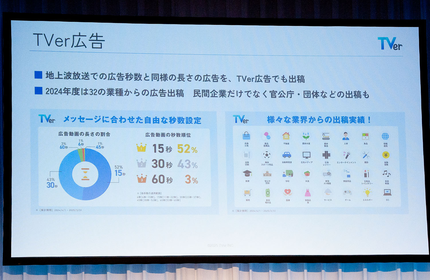 一方、大場氏は、「TVerが広告主にとって『最初に想起されるメディア』になってきた」と現状を分析。多様な業種からの出稿に加え、広告主が直接入稿作業を行えるセルフサーブ機能により、地方の広告主からの出稿も裾野が広がっていると語る。