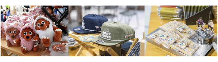ハピキャンとNEW ERAとのコラボアイテム「ハピキャンキャップ」をはじめ、「ウルフィ」グッズも販売。オンラインショップ「ハピキャンストア」で人気のアイテムを実際に手に取り、ショッピングを楽しめる。