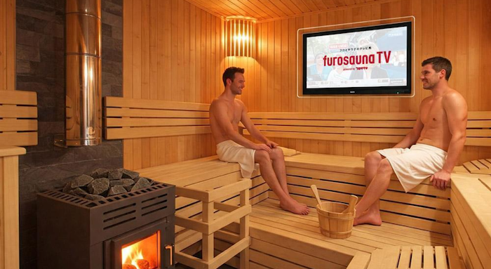 サウナ施設や浴室に設置されたデジタルサイネージで、番組やCMを配信。