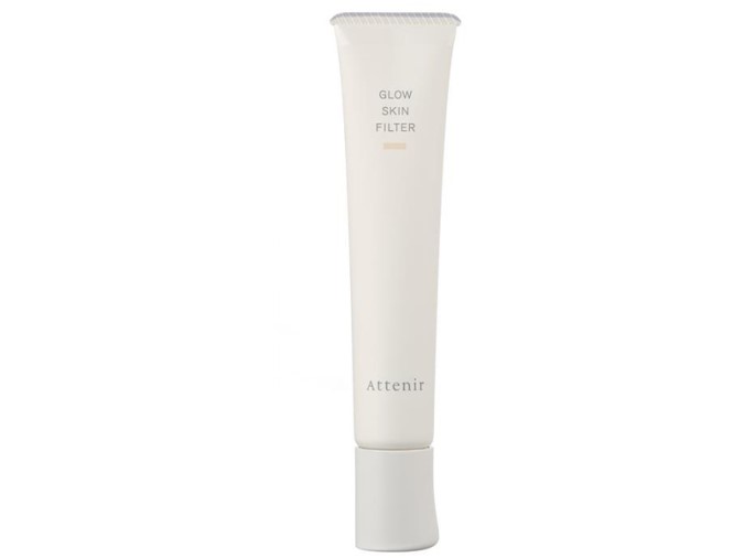吸いつくように密着、自然にトーンアップして色ムラや毛穴の凹凸など補正する化粧下地『グロウスキンフィルター(ベージュ)』(現品価格2,200円)のサンプル。