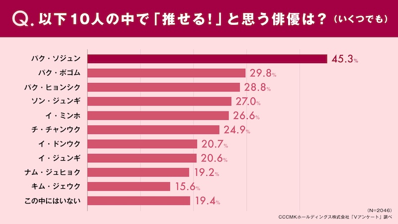 ・「推せる!」と思う俳優の1位に輝いたのは「パク・ソジュン」!
