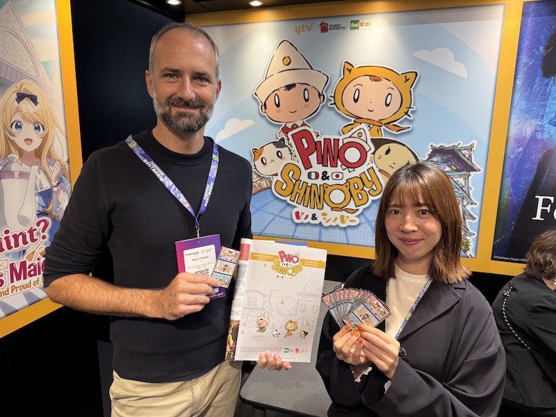 TIFFCOMの商談から国際共同制作に繋がった新アニメシリーズ『ピノ&シノビー』のキャラクター(筆者撮影)