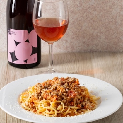 玉葱、人参と一緒に長時間煮こんだミートソースは脂も少なくアッサリ食べられます。