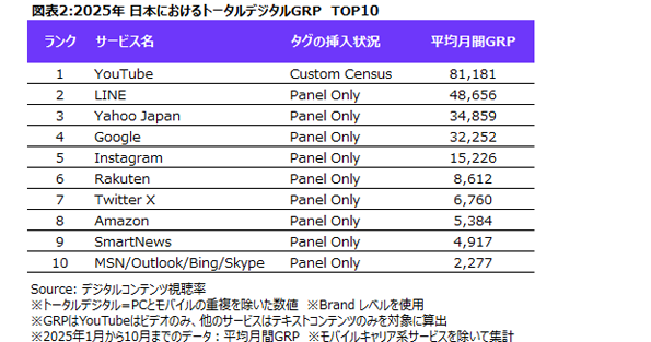 TOPS OF 2025: DIGITAL IN JAPAN ニールセン2025年日本のインターネットサービス利用者数/利用時間ランキングを発表