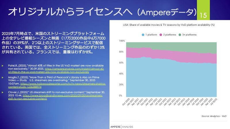 「コンテンツ投資が鈍化した結果、各プラットフォームでは『カタログ内のサバイバル』が起きている」と内山氏。サーバー代などのコストを考慮し、「視聴されない作品はカタログから外され、本当に価値のある作品だけが生き残る状況」にあるという。