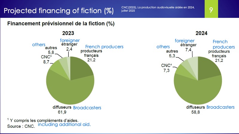 資金源にフォーカスすると、同じくフランスの例では全体における放送局の出資比率が約58%であるのに対し、制作を請け負うプロデューサーが自ら外部から調達してくる資金が約21.2%と大きいのが特徴であるという。