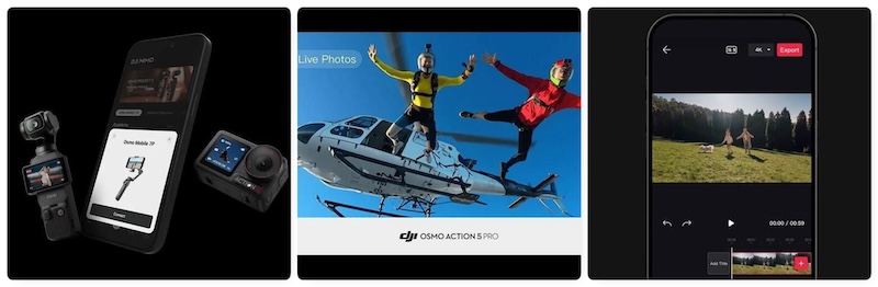 DJI Mimo(ディージェイアイ ミモ)は、OsmoシリーズなどのDJIハンドヘルド機器と連携し、撮影から編集・共有までをスマホ1つで行える統合アプリです。撮影時のHDライブビューやインテリジェント撮影モードに加え、テンプレートや編集機能を使って手軽に仕上げられるのが特長です。