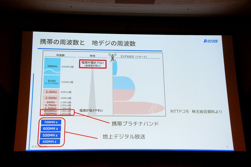 さらに菊池氏は、米国で2012年に放送用の600MHz帯が携帯電話事業者に再割り当て(オークション)された点に言及。「これからは周波数の使い方を固定的に考えない姿勢が重要だ」と説いた。