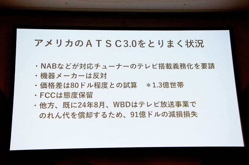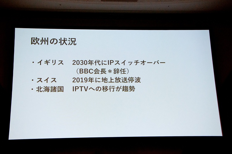 「米国では次世代放送規格『ATSC3.0』のチューナー搭載義務化を巡って放送局とメーカーが対立し、大手メディア企業ワーナー・ブラザース・ディスカバリーが放送事業の売却を試みるも買い手がつかなかった。ヨーロッパでは、イギリスのBBCが2030年代のIP移行(=地上波停波)に言及し、スイスは既に停波を完了するなど、放送波の維持が自明ではなくなってきている」