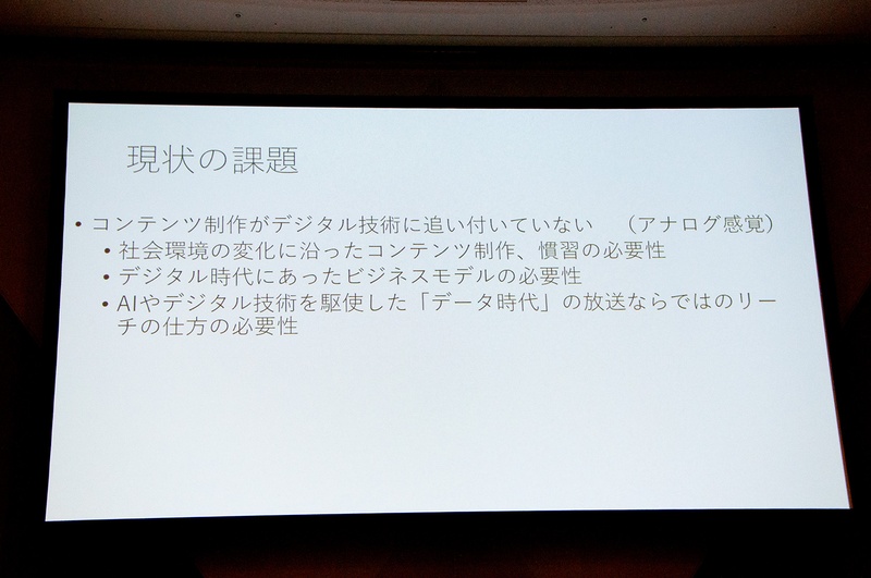 その一方で「コンテンツ制作はこのデジタル技術が追いついていない」「今までと同じマインドセットで考えてはいけない」と述べ、技術を活かすためのビジネスモデルやコンテンツ制作手法の変革が急務であると課題を提示した。