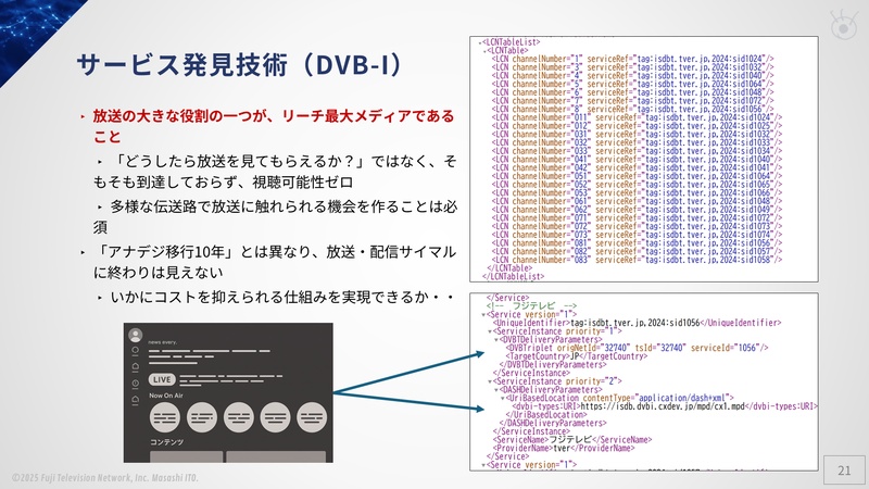 続いて、元TBSでTVerの立ち上げなどにも関わったイコーゼ・大吉氏が、現在の地デジ技術であるBML(Broadcast Markup Language)で実現可能な具体的なサービスとして、「放送イオンモール型BMLポータル」と名付けた構想を提案した。