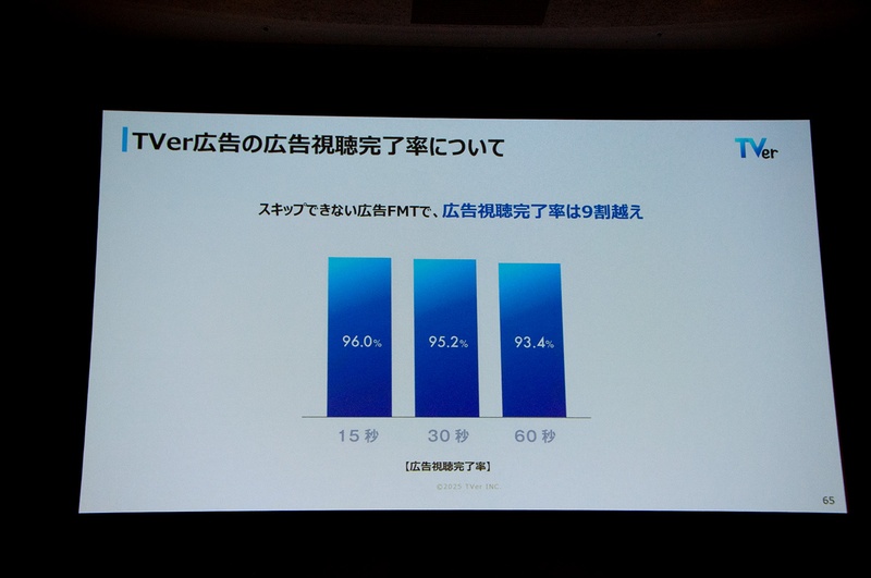 2024年のパリ五輪でユーザーが急増した後もその水準を維持しているといい、「プラットフォームとして定着した」と廣田氏。TVer広告の特徴として、放送局の高品質なコンテンツによる「ブランドセーフティの高さ」と、目的視聴が多いことによる「90%以上」という極めて高い「完視聴率」を挙げた。