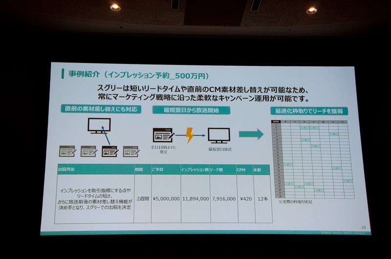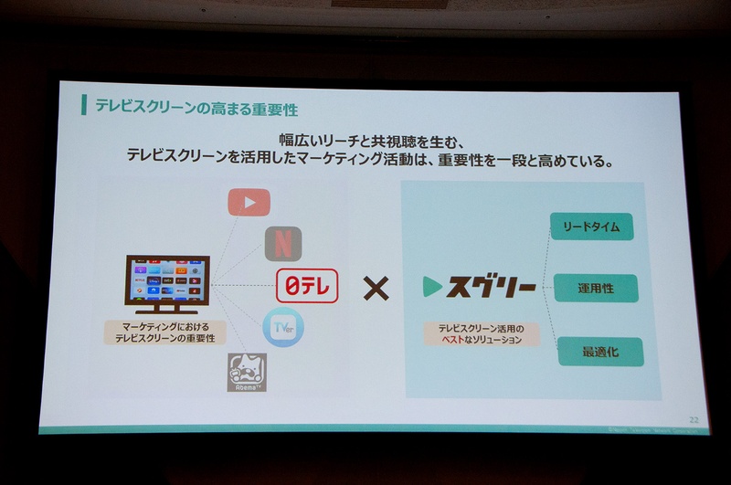 「スグリーはサービス開始から半年の間、広告主様から一度もクレームを頂いていない。これからも『テレビ広告をやってよかった』と思っていただけるようなお客さまをもっと増やしていきたい」(日テレ・武井氏)