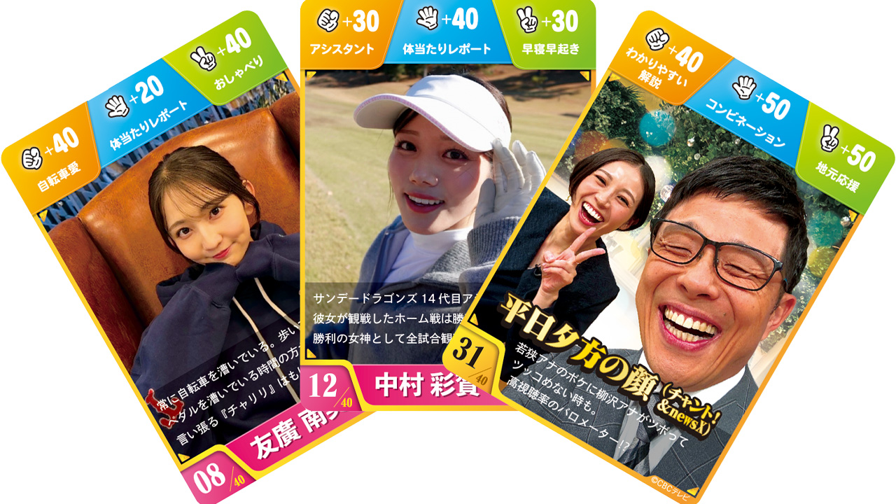 4つ目はグッズゾーン。 各番組のグッズは新アイテムも用意している。 昨年好評だったCBCアナウンサー考案「CBCアナウンサートレーディングカード」もデザインを一新&種類を増やして40種類になった。 今年の春祭りでしか手に入らないグッズも盛りだくさんなので是非買い求めてほしい。 続報を楽しみに待っていてほしい。