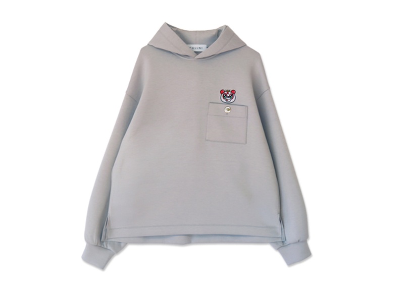 青山氏の手書きサインとエディションナンバー入り、名古屋展・新宿展あわせて2色合計限定130着を販売。膨らみのある、ふっくらと空気を含んだような着心地のダンボール素材のプルオーバーフーディ。ゆったりと広く取った身幅と、立体的でしっかりと立ち上がるフードが特徴だ。左胸には青山氏が手掛けたキャラクター刺繍を施し、刺繍の下にはCULLNIオリジナルのゴールドボタン付きポケットを配している。