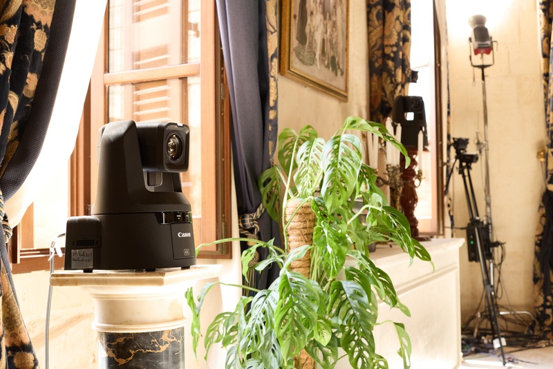 セット内の壁面などに設置される「CR-N700」および「CR-N500」は、4K対応の高画質PTZ(パン・チルト・ズーム)リモートカメラです。遠隔操作と設置自由度の高さを生かし、出演者やスタッフの動線を妨げることなく、さまざまなアングルからの撮影を可能にします。また、1型センサーを搭載し、Canon Log3に対応した高画質により、CINEMA EOS SYSTEMと併用しても、違和感のない映像を実現できます。IPベースの映像伝送やSDI出力(CR-N700/CR-N500)に対応し、スタジオシステムや収録システムとの高い親和性を実現。リモートカメラコントローラー「RC-IP1000」を使用することで、少人数オペレーションでも安定したカメラワークを行えます。