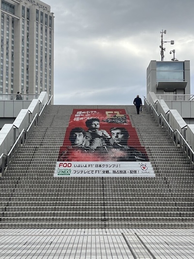 階段グラフィック装飾 お台場フジテレビ本社周辺では、「F1™日本グランプリ」のキービジュアルを用いた階段装飾を実施する。大会開催週にあわせ、来訪者や通行者も「F1™日本グランプリ」の高揚感を楽しめる演出を展開する。