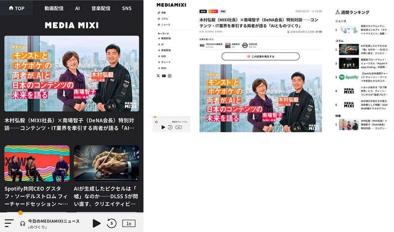 MIXI、音声読み上げ機能搭載のWEBを中心とした総合メディアプロジェクト「MEDIAMIXI」を始動