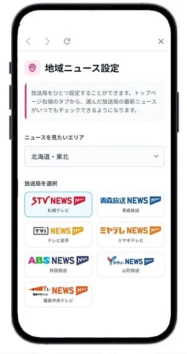 また、日本テレビ系NNN30社のネットワークによる地域ニュースもピックアップしている。現在地や出身地を「地域設定」するだけで、各社の最新ニュースをトップ画面のタブでいつでもチェックできる。